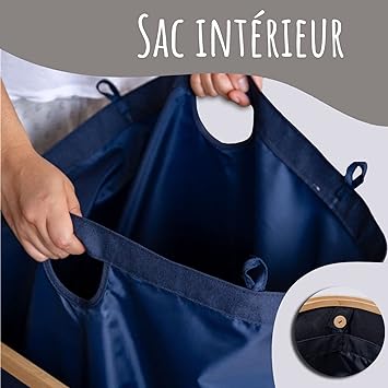 Ce bac à linge bleu est avant tout équipé d’un sac intérieur lavable, facilitant le retrait des vêtements sales et leur transport. En effet, cette fonctionnalité rend l’entretien du panier à la fois pratique et hygiénique.