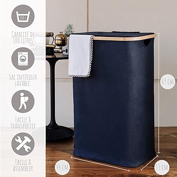 De plus, l’installation de ce panier à linge de couleur bleu est un jeu d’enfant. Les instructions détaillées incluses dans le colis permettent un montage rapide en moins de 3 minutes. Une fois assemblé, le panier conserve sa forme sans risque de s’effondrer. Cela permet donc une durabilité et une stabilité à long terme. Optez ainsi pour la praticité sans compromettre le style avec ce panier à linge spacieux de 100l.